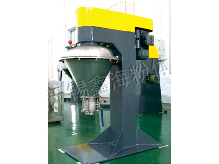 該混合機(jī)具有錐形混合腔體,并配有中心轉(zhuǎn)軸,通過轉(zhuǎn)軸的速度產(chǎn)生離心力將粉料推向混合腔體內(nèi)壁。此時(shí)腔體的錐形形狀使粉體產(chǎn)生一個(gè)沿內(nèi)壁向上的運(yùn)動(dòng)。粉體再由獨(dú)特的混合機(jī)蓋引導(dǎo)到混合機(jī)的中心,并回落到混合腔的底部,重新開始新一輪的混合過程。