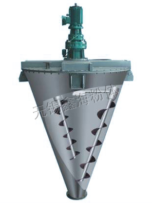 單錐雙螺旋混合機是一種新型高效、高精度的混合設(shè)備。該機采用一套電機及擺線針輪減速機組成公轉(zhuǎn)和自轉(zhuǎn),利用長短攪拌螺桿回轉(zhuǎn)運動和兩螺桿自轉(zhuǎn)運動相結(jié)合的原理,使比重配比懸殊的物料達到合適的混合度,混合時間短,效果好。
